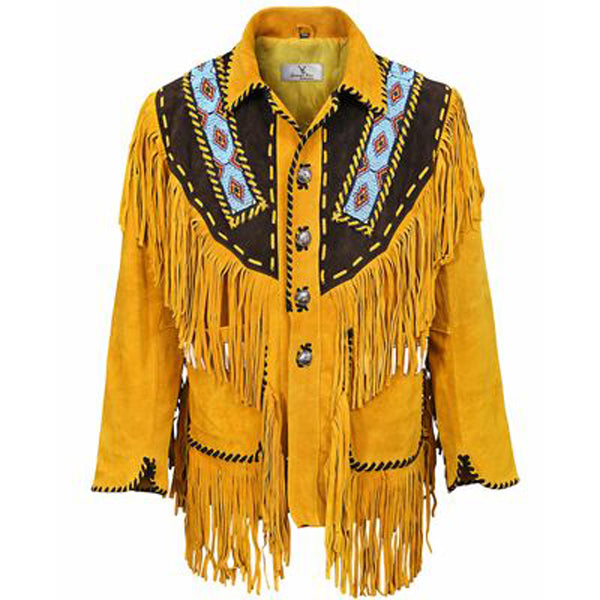 Look stylish and stay warm with this Authentic Men’s Native American Western Jacket. It’s crafted from 100% soft, durable leather that not only looks great, but will serve you for years to come. Its western-style details will bring you a unique look you won’t find anywhere else.