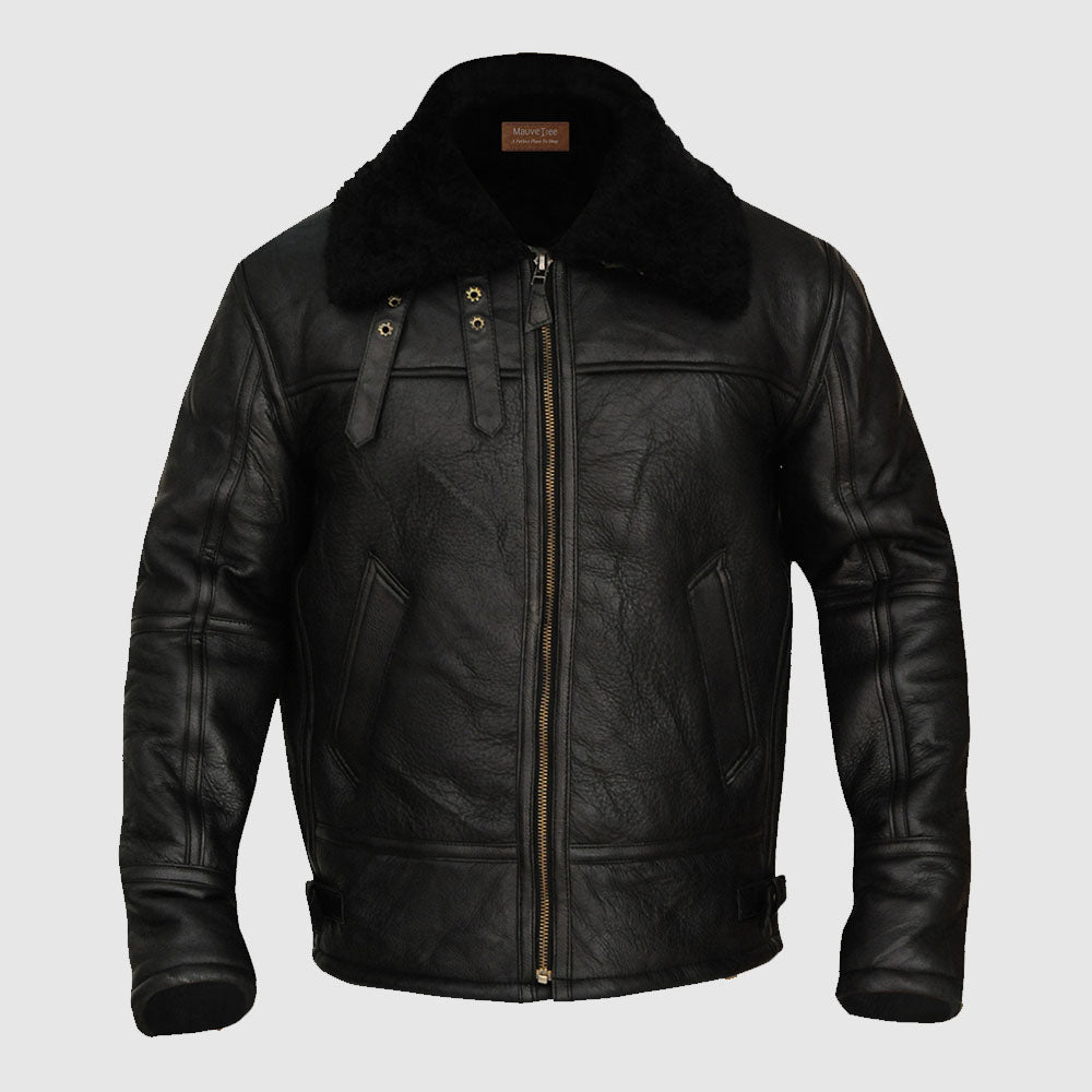 Black Sheepskin B3 Aviator Bomber Jacket for Men