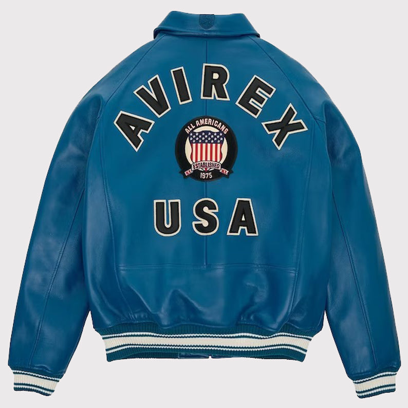 Blue USA Edition Military Bomber Leather Jacket