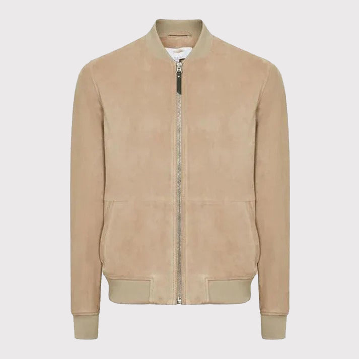 This sleek Brown Men’s Suede Leather Bomber Jacket is made of high-quality suede for a comfortable yet rugged look. The slim fit is sure to add style to any outfit.