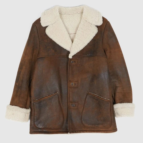 Brown Shearling Ranch Coat for Men