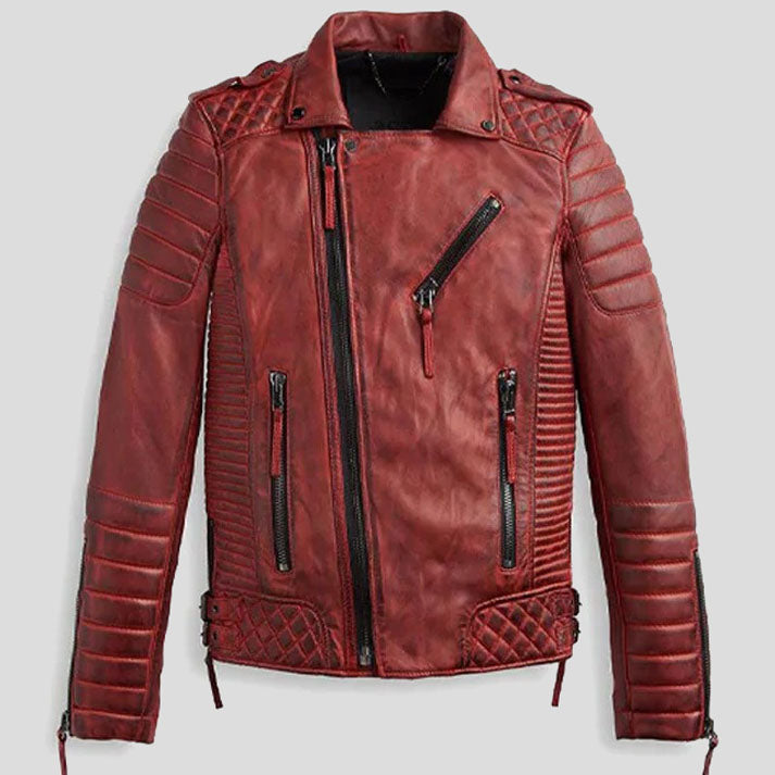 Burnt Red Biker Leather Motorbike Jacket For Men