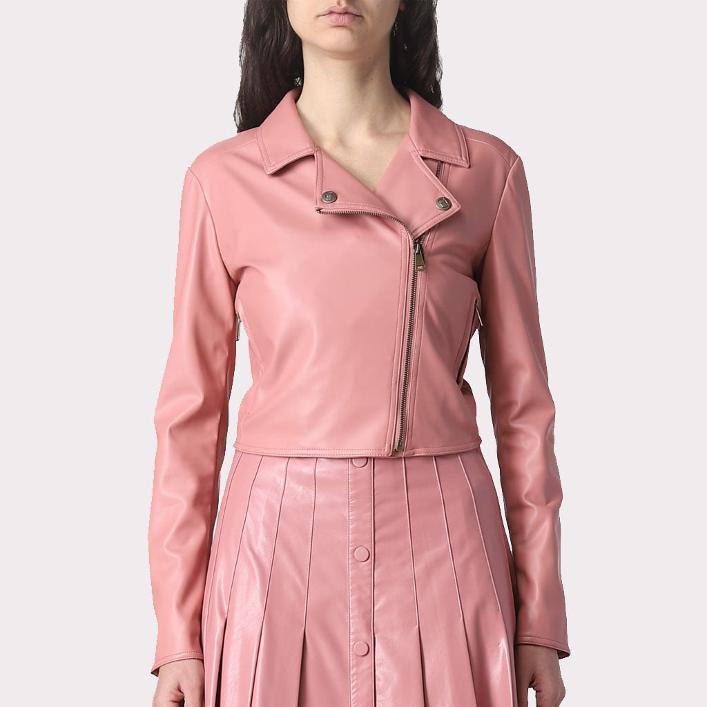 Chic Pink Minimalist Leather Jacket – Patel Collection