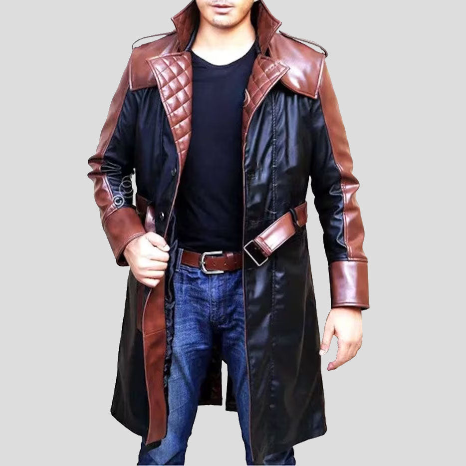 Classic Men’s Genuine Sheepskin Long Leather Trench Coat