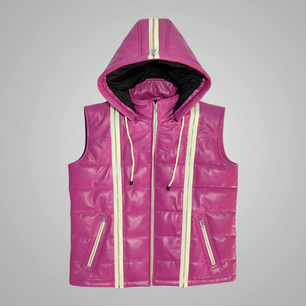 Stay cozy and stylish with this Custom Pink leather Puffer Jacket with Detachable Hood from Jackets Kingdom. Designed for warmth and versatility, it features premium insulation, a lightweight feel, and a removable hood for a customizable look. The water-resistant fabric keeps you dry, while the soft lining adds comfort. Perfect for winter fashion lovers who want a unique, custom fit!