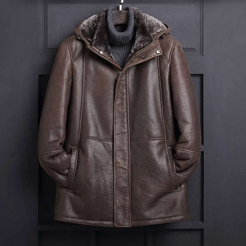 This Dark Brown Hooded Shearling Coat offers exceptional warmth and style. Made from premium, soft material, this coat is perfect for men looking for a mix of fashion and comfort. Plus, the drawstring hood ensures cozy protection from the elements. Looking for something classic? Explore our aviator jacket mens collection.