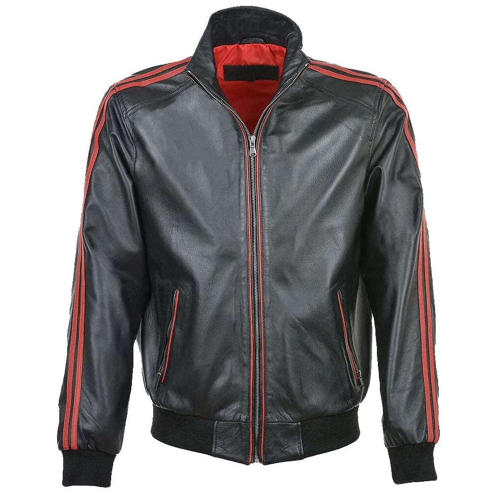This Fashion Red Striped Collar Leather Bomber Jacket is designed to provide a stylish look with maximum comfort. Featuring a striking red and black striped collar, this jacket is constructed with genuine leather for durability and softness. This jacket is perfect for any stylish and fashionable man.