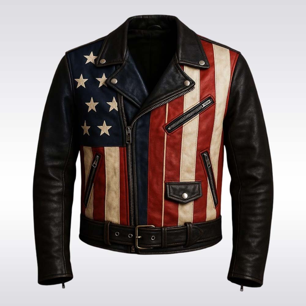 Freedom Rider Vintage American Flag Leather Jacket – USA Biker Style