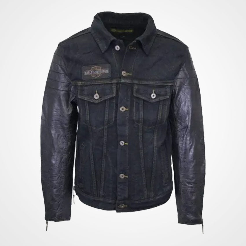 The Harley Davidson Denim Jacket with Leather Sleeves is the perfect mix of rugged and refined. Built with durable blue denim and contrasting genuine leather sleeves, this jacket blends classic biker style with modern streetwear appeal. Whether you’re riding or layering up for everyday wear, it’s a bold go-to. Finished with signature Harley Davidson detailing, it’s ideal for those who want something tougher than your average denim jacket. At Jackets Kingdom, we bring you authentic gear that?s built to last and ready for the road. Shop now with fast shipping and easy returns. Ride in style?on and off the bike.