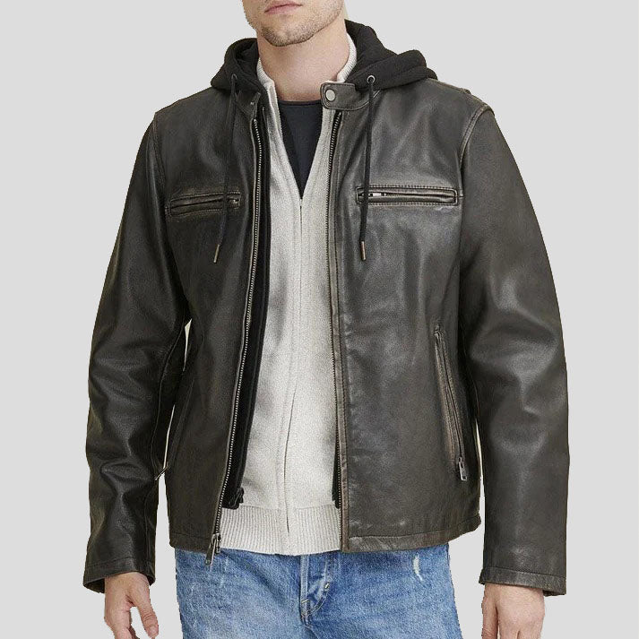 This stylish Hooded Biker Leather Jacket For Men delivers quality and performance like no other. Crafted from genuine cowhide leather, it’s designed to keep you warm and comfortable on the chilly days. With its hood and multiple pockets for all your belongings, this jacket provides the perfect mix of function and fashion.