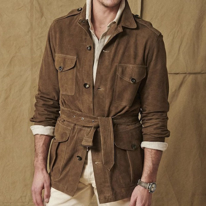 Luxury Safari Jacket with Belt – Suede & Multiple Pockets