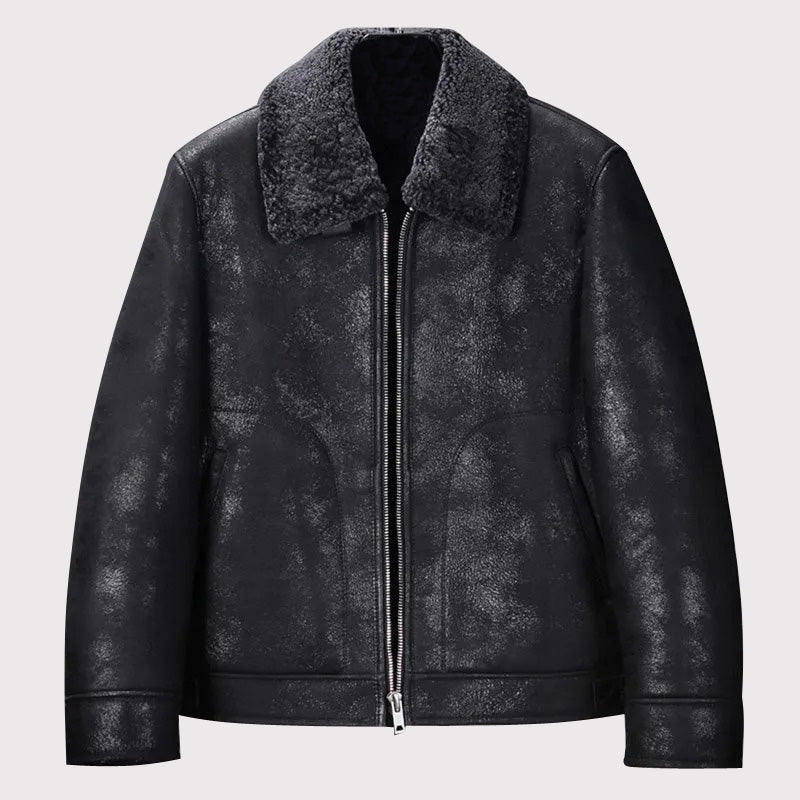 Stay toasty and stylish this winter with this Men’s Black B3 Shearling Short Winter Jacket. Crafted from a 100% wool blend, this jacket keeps you warm in even the coldest of conditions while providing a fashionable, slim fit. Add this luxurious jacket to your cold-weather wardrobe today! Looking for something classic? Explore our aviator jacket mens collection.