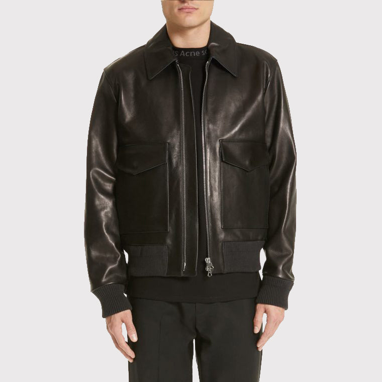 Stay warm and stylish with this sleek black men’s lambskin leather jacket. Crafted from premium lambskin leather, this jacket features a tailored fit and timeless design, ideal for any occasion.