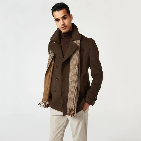 Step out in style with our Men’s Brown Fleece Peacoat. This brown fleece peacoat, made from soft fleece, provides cozy warmth and a sophisticated look. Its rich brown hue and classic double-breasted design make it a versatile choice for both casual and semi-formal occasions. With its timeless style and comfortable fit, this peacoat men is perfect for any wardrobe. Buy the best Men’s Brown Fleece Peacoat at an affordable & discounted price with free shipping.
