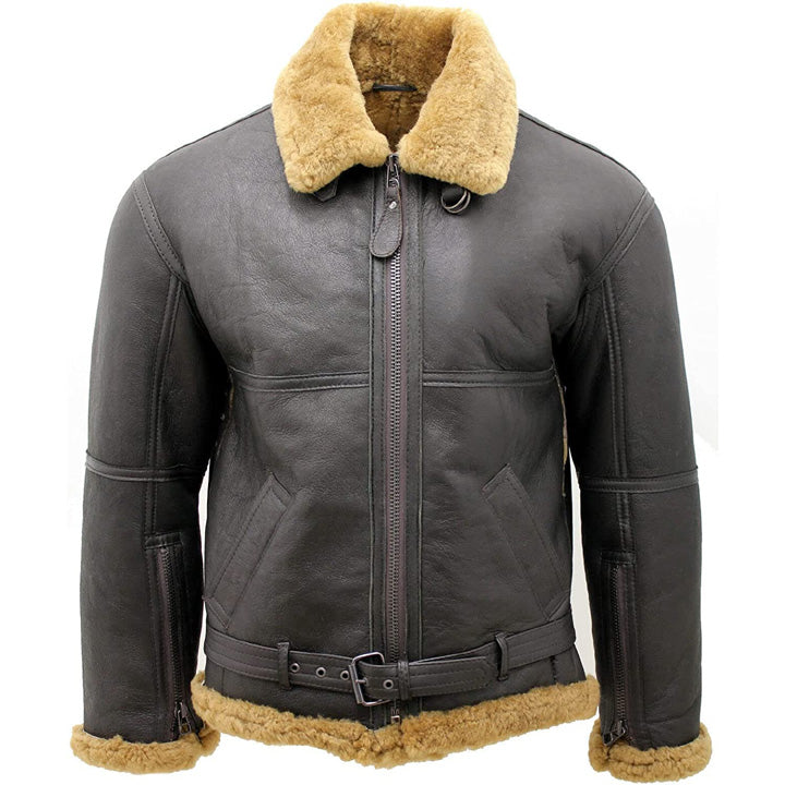 Men’s Brown RAF Shearling Sheepskin Flying Jacket with Ginger Fur
