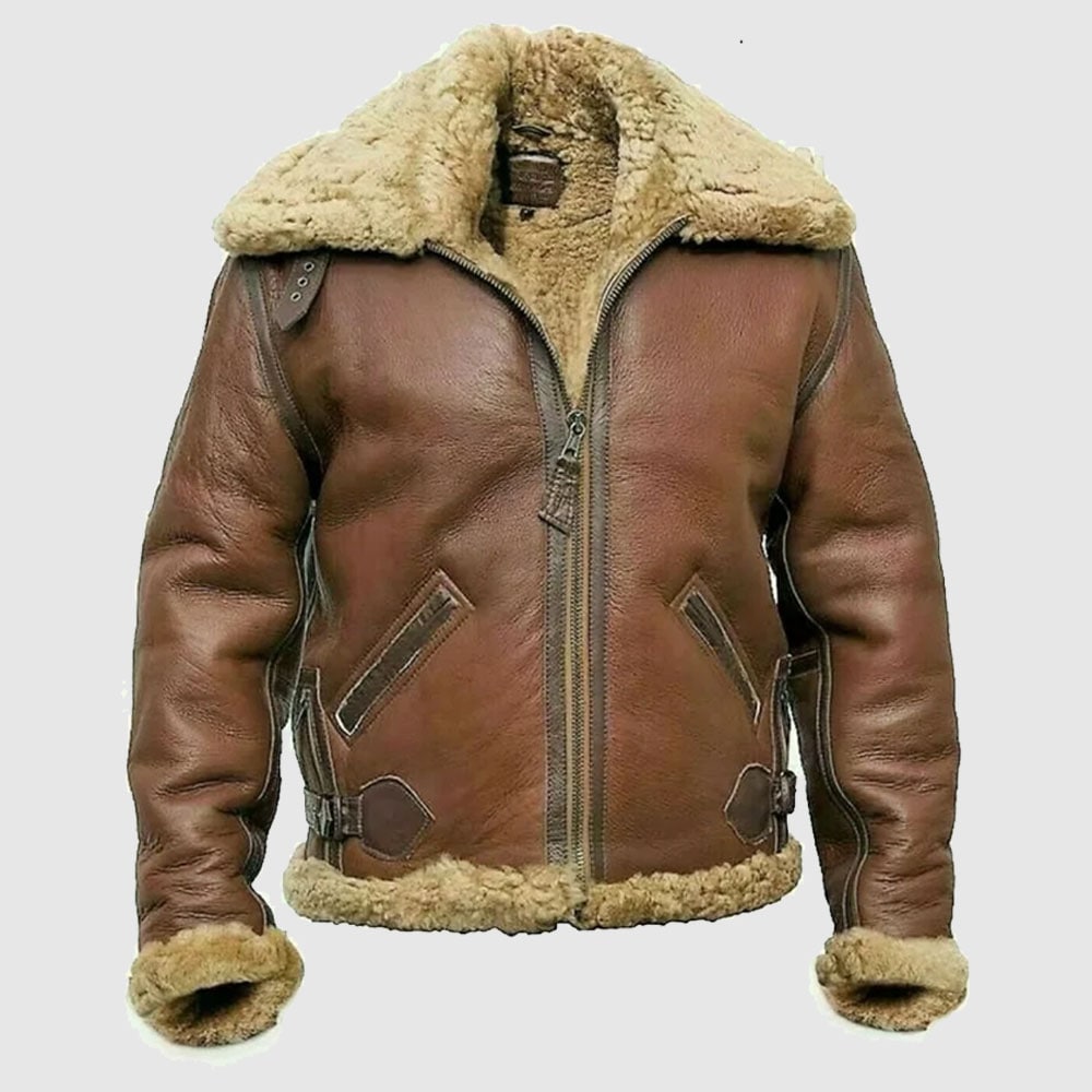 Look trendy in the Men’s Brown Shearling Fur Aviator Leather Jacket. With shearling fur lining and genuine leather construction, this stylish jacket is a must-have for practical and fashionable wear. The perfect wardrobe addition for any man.