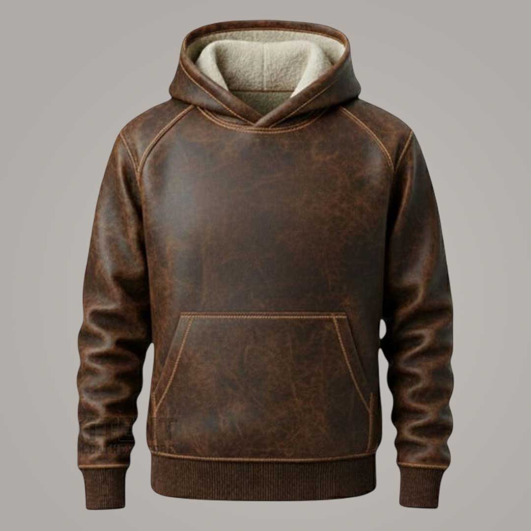 Stay Warm In Style With This Vintage Brown Leather Hoodie