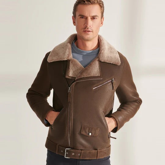 Be the first to review “Men’s Classic Brown Shearling Sheepskin Biker Aviator Jacket” Cancel reply