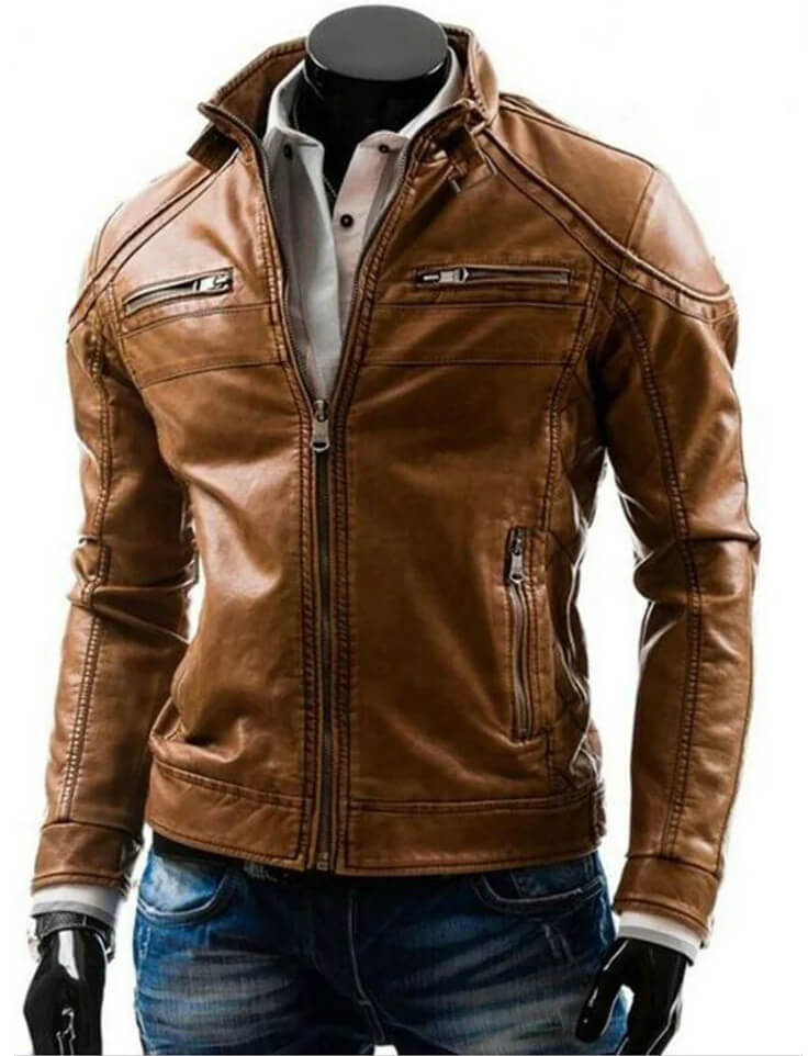 Elevate your style with the Men’s Fashionable Brown Leather Biker Jacket. Crafted from high-quality leather, this jacket offers both durability and a timeless look. Perfect for the modern man, it features classic biker elements combined with a sleek, fashionable design. Ideal for casual outings or motorcycle rides, this jacket is a must-have addition to any wardrobe.