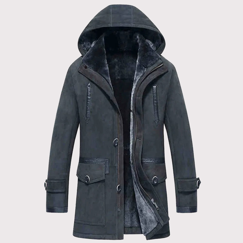 Men’s Hooded Shearling Fur Coat – Warm Winter Jacket