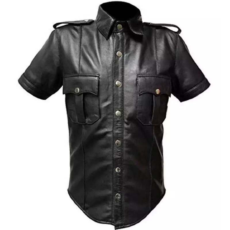 Step up your style game with the Men’s Hot Police Uniform Sheep Leather Shirt. This short sleeve shirt is crafted from premium real sheep leather, offering a sleek and commanding look. Perfect for themed events or making a bold fashion statement, this shirt combines durability with eye-catching design.