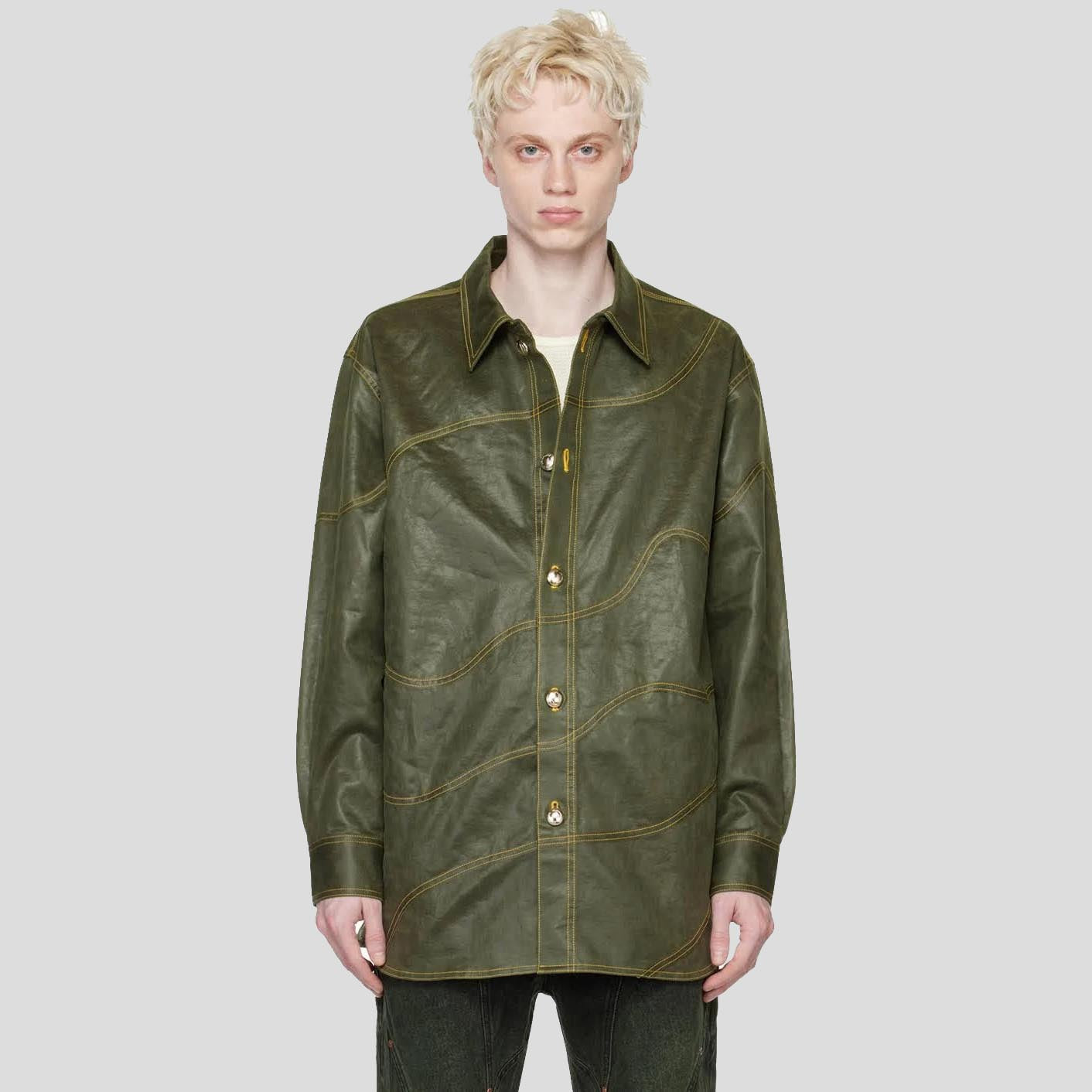 Men’s Khaki Wave Sheepskin Leather Shirt