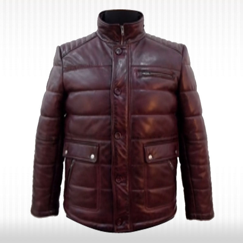 This men’s puffer jacket is crafted of real leather in a bold oxblood hue for a fashionable and comfortable look. It’s fully quilted with a casual sport style for a modern and stylish edge.