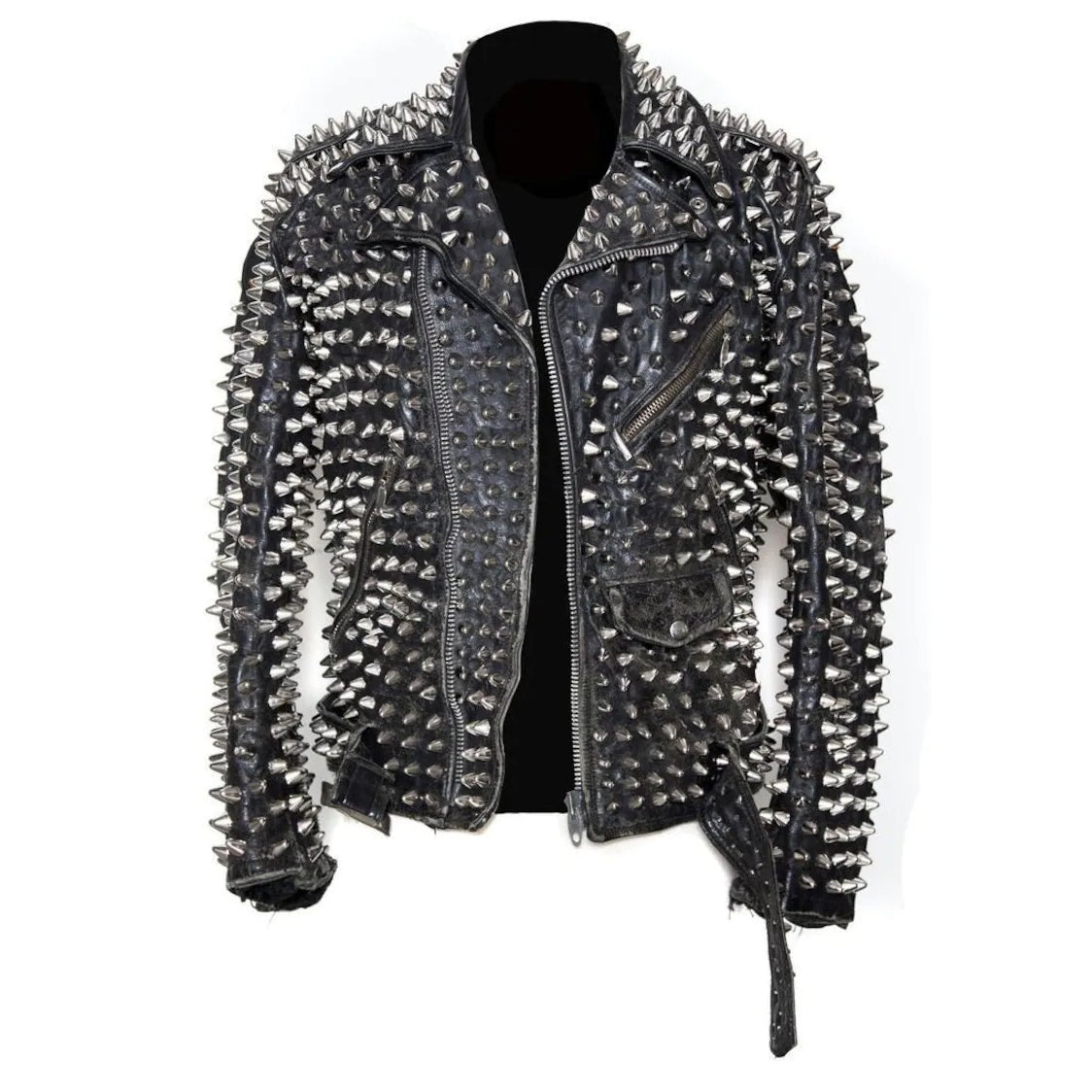 This men’s leather jacket is crafted from genuine cowhide leather for lasting comfort and style. It features a punk-inspired design with metal buttons and spiked studs, perfect for creating a unique look. It’s sure to be a wardrobe staple for individuals with a distinct sense of style.