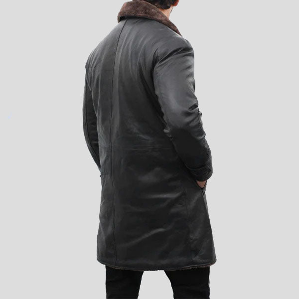 Men’s Shearling Lined Black Leather Trench Coat