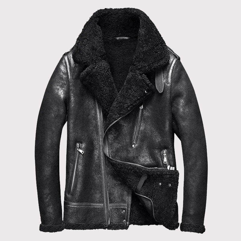 This Men’s Shearling Notched Collar Sheepskin Leather Jacket is designed for maximum warmth and comfort. It features a soft shearling lining, a notched collar, and a durable sheepskin leather exterior, making it a perfect winter option.