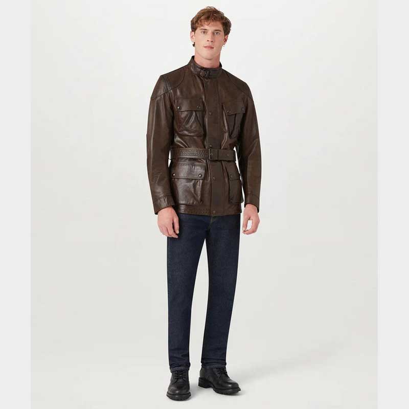 Ride with confidence in the Men’s Trialmaster Panther Leather Biker Jacket from Jackets Kingdom. Handmade from premium genuine cowhide leather, this motorcycle jacket features classic Trialmaster detailing and a racing-inspired silhouette.