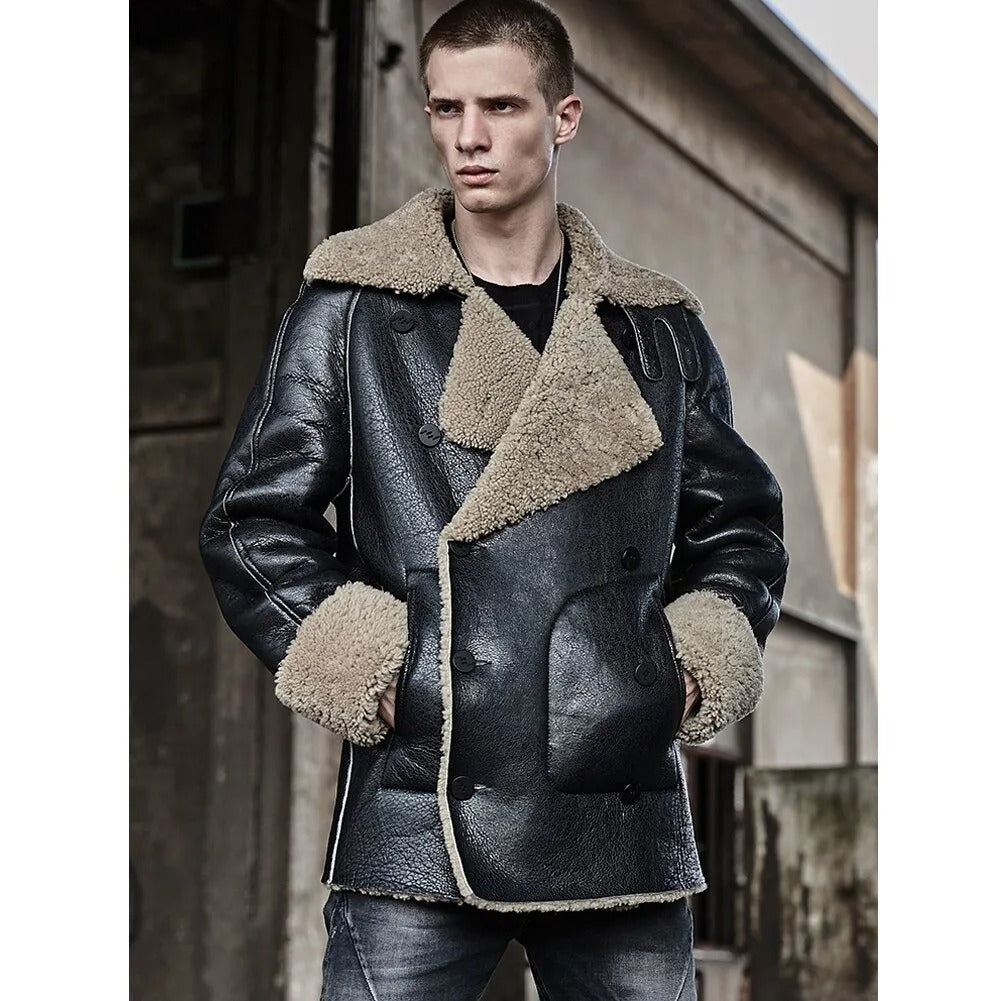 New Fashion Men’s Sheepskin Shearling Fur Coat