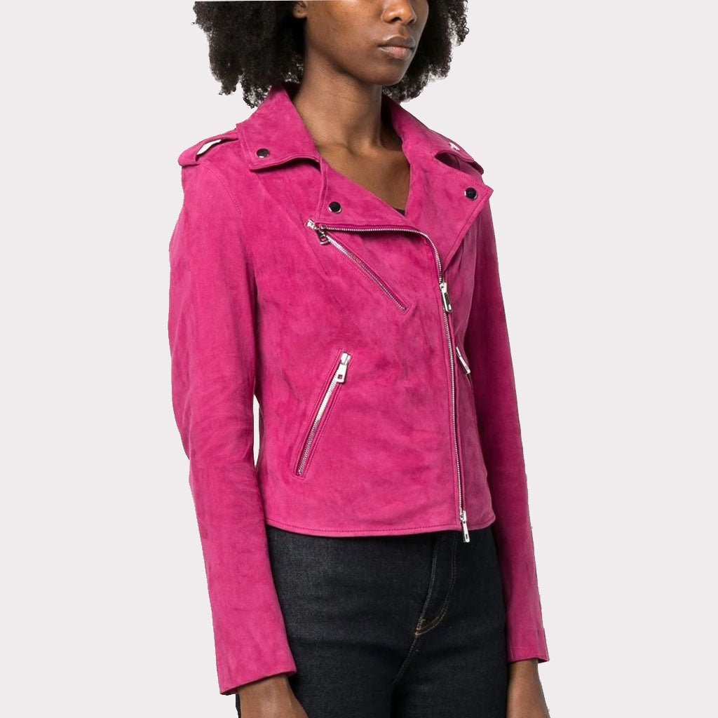 Premium Pink Women’s Suede Biker Leather Jacket