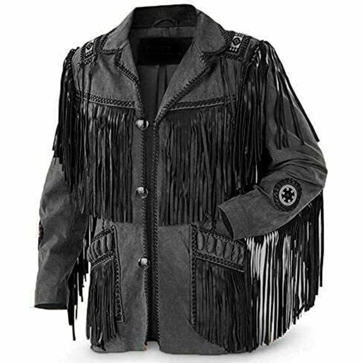 Western Cowboy Black Suede Leather Jacket Native America Vintage Fashion Coat