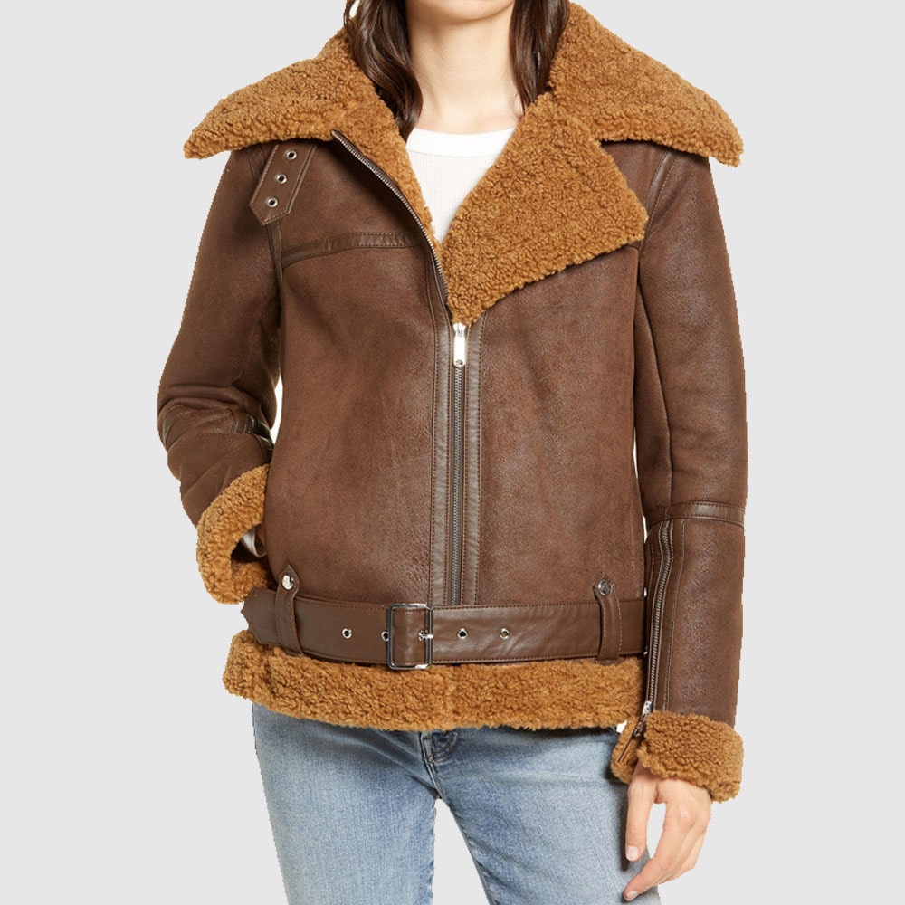 The Women?s B3 Brown Shearling Bomber Leather Jacket combines timeless style with durable warmth. Crafted from premium brown leather and lined with soft shearling, this B3 jacket offers exceptional comfort and insulation during colder months. Its classic bomber silhouette ensures a flattering fit and versatile look, perfect for layering over casual or chic outfits. Designed for durability and style, this jacket is an essential addition to your fall and winter wardrobe. Embrace both fashion and function with this iconic leather bomber jacket, tailored to keep you warm and looking sharp all season long.