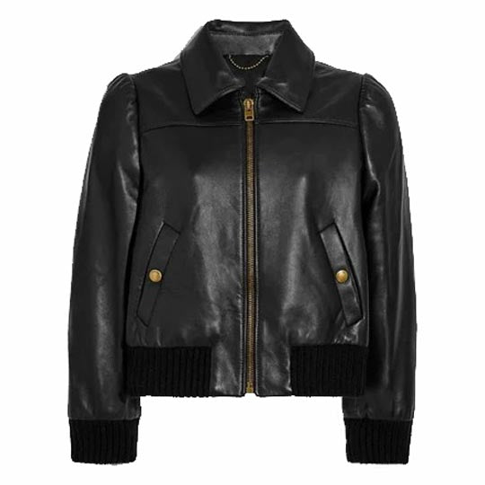 Women Black Leather Bomber Jacket Short