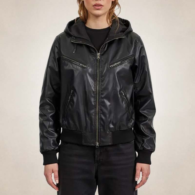 Get ready to own the streets in the Women’s Black Leather Bomber Jacket with Hood?your go-to outerwear for a sporty yet edgy streetwear look. Blending sleek leather with casual comfort, this jacket is made for women who love layering up with attitude. Whether you’re heading to a concert or a weekend hangout, this versatile jacket keeps you cozy, confident, and effortlessly on-trend. Perfect for pairing with jeans, joggers, or leggings?it?s all about everyday wear with standout style.