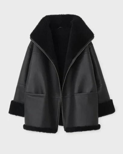 The Women’s Black Oversized Shearling Leather Jacket combines edgy oversized style with cozy comfort. Made from high-quality leather and lined with plush shearling, this jacket is perfect for staying warm in cold weather while making a bold fashion statement. Its oversized fit adds a modern twist to a classic design. Shop the best oversized shearling jacket at discounted price with free shipping.