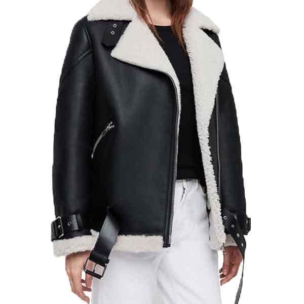Stay warm and stylish with this Women?s Black Shearling Biker Jacket. Crafted from real leather with a faux shearling collar and zipper cuffs, this sleek shearling biker jacket offers a comfortable fit and great protection from the elements. Plus, enjoy free shipping with an affordable price.