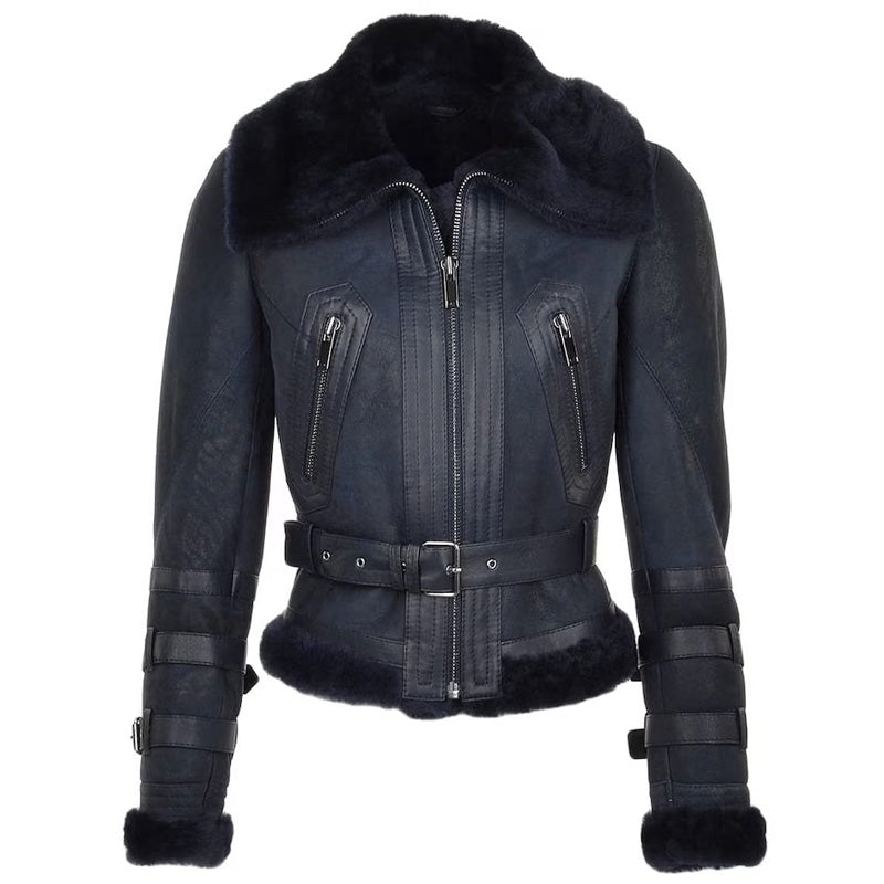 Elevate your winter style with this Women’s Black Sheepskin Shearling Leather Bomber Jacket. Boasting a soft sheepskin leather exterior and indulgently warm shearling fur lining, this jacket offers defense from the elements combined with luxurious comfort.