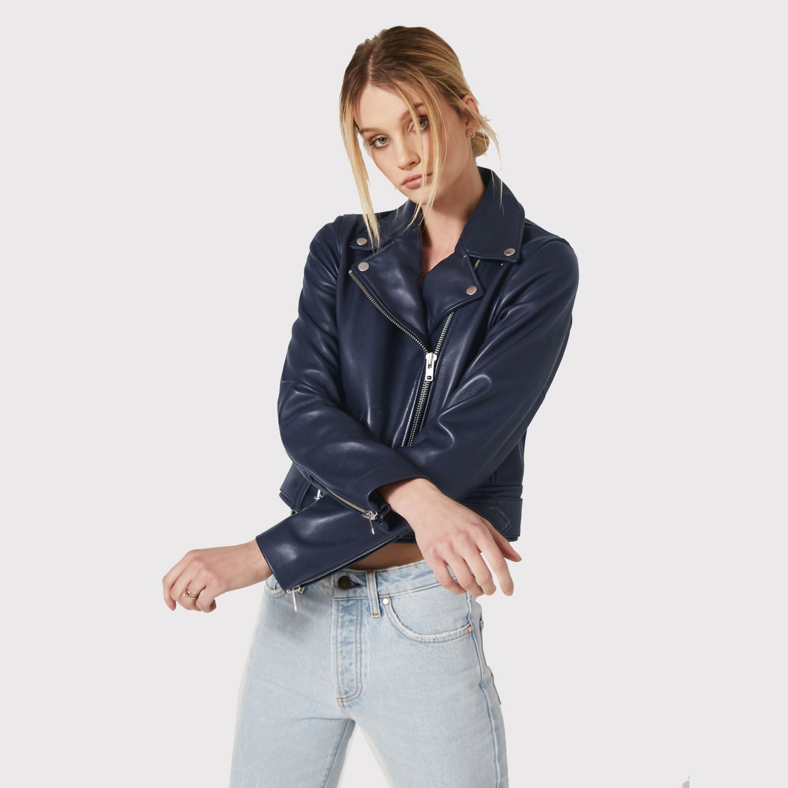 Be the first to review “Women’s Blue Lambskin Leather Jacket”