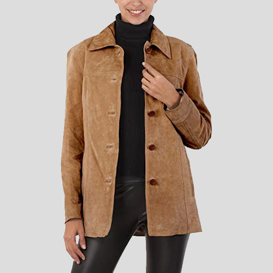 This Women’s Brown Suede Leather Car Coat is crafted from luxurious, rich suede that’s soft to the touch and provides durable coverage from the elements. With its water-resistant finish and warm inner lining, this elegant car coat is sure to keep you stylish and warm all winter long.
