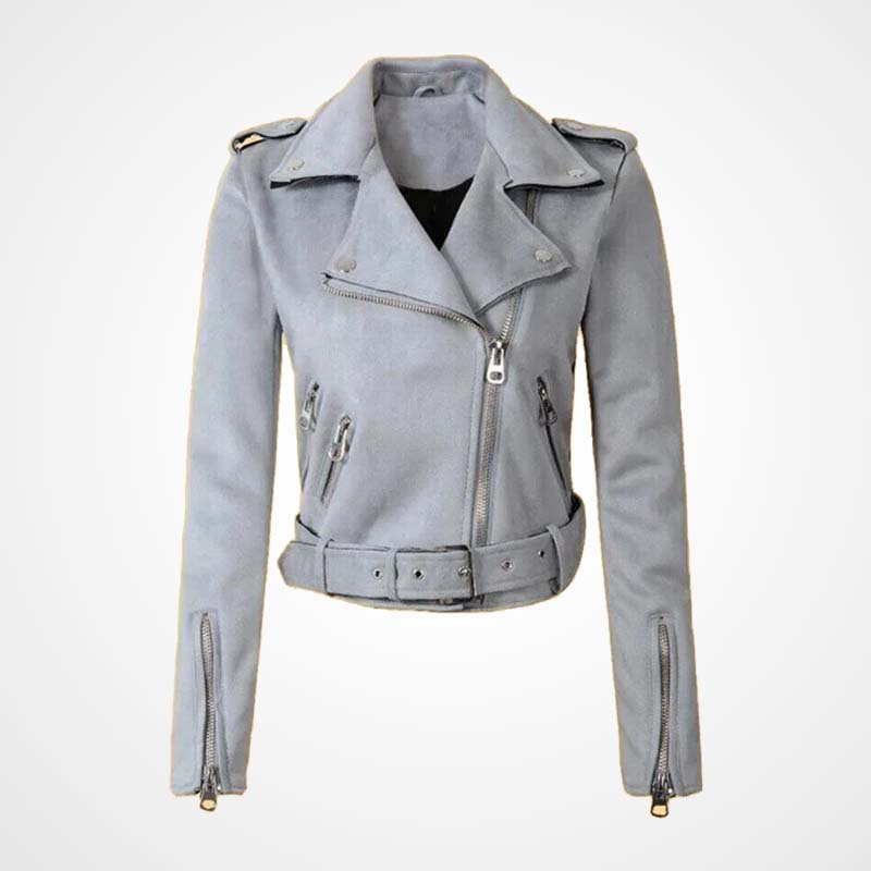 Command attention with the Women’s Gray Suede Leather Biker Moto Jacket from Jackets Kingdom. Crafted from high-quality suede leather, this jacket combines sleek moto styling with soft, comfortable wearability. The modern gray tone pairs effortlessly with jeans, boots, or your favorite dress. Designed for movement, attitude, and everyday adventure. Shop now at Jackets Kingdom to find your next statement piece.