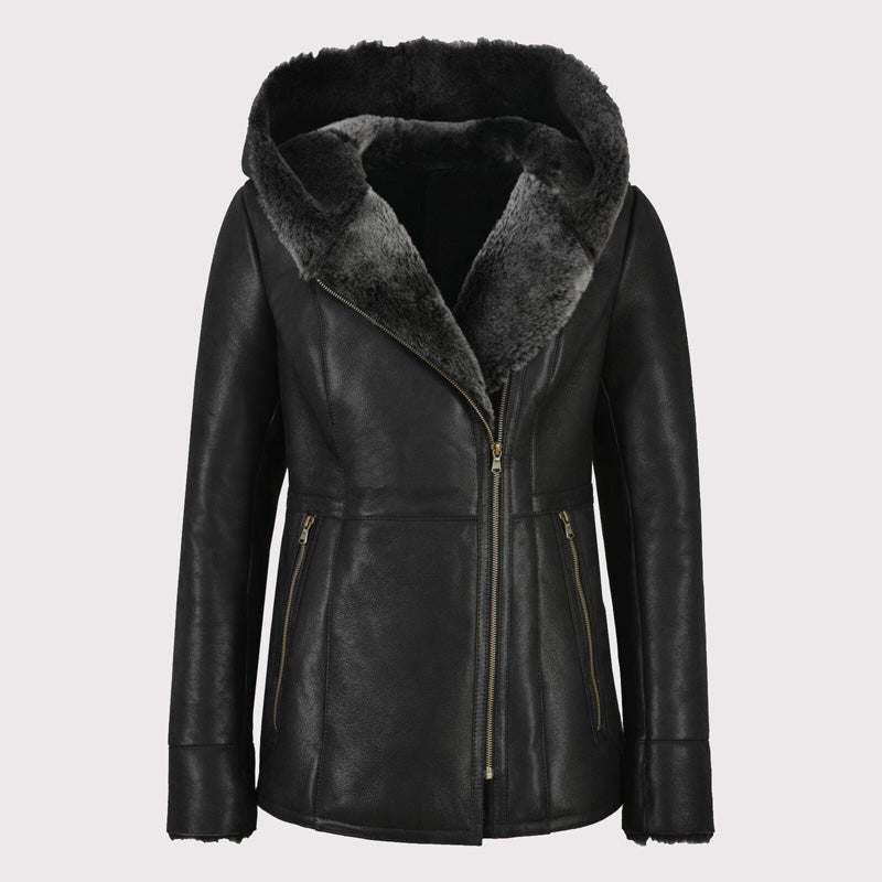 This Women’s Grey Shearling B3 Flying Sheepskin Jacket offers the perfect mix of warmth and style. It features a super soft faux shearling material, complete with a luxe leather-look pockets, for the ultimate mix of comfort and classic style.