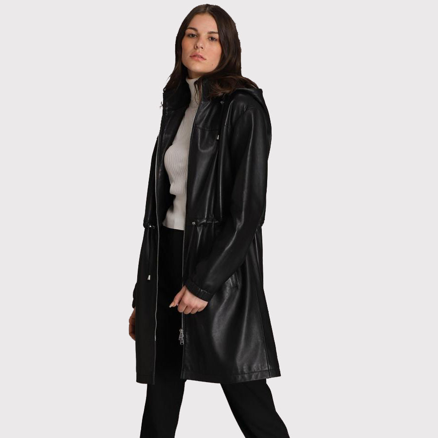 This luxurious Women’s Hooded Black Lamb Leather Coat with Zip Front will keep you warm and stylish. Supple lamb leather provides a soft, luxurious feel, while the zip front provides a perfect fit. Ideal for the city or the country, this coat is sure to make a statement.