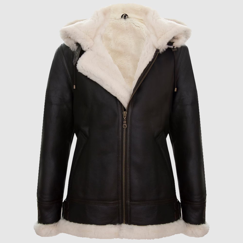 Women’s Sheepskin B3 Leather Jacket with Removable Hood