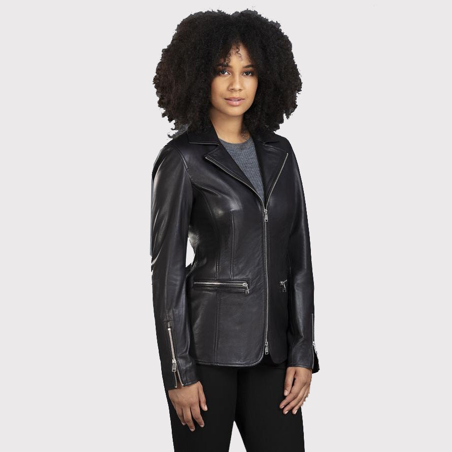 Women’s Slim Fit Black Leather Jacket in Blazer Style